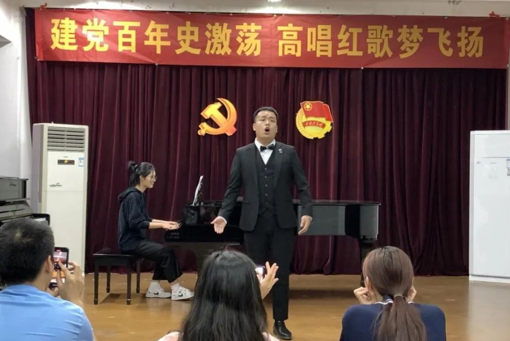 曾逸鑫同学演唱的《江河万古流》,不仅对长江、黄河的万古源流予以无限的赞叹,更是对中华雄魂情思悠悠予以深情赞颂。此曲不仅为建党百年献上华丽的赞歌,更让党支部的同学们重温红色经典,走进祖国大好河山的美好画卷,激起了同学们对祖国的深切自豪感。