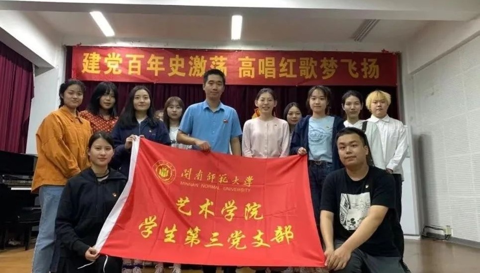 最后,本次主题活动在余承轩、高品玲、陈艳三位同学演唱的《灯火里的中国》中结束。在圆满完成主题党日活动后,支部书记强调:首先,在建党一百周年之际,学生第三党支部作为以音乐专业学生为主要成员的党支部,应当积极响应习总书记的号召,认真学习党史,将党史学习融会贯通到专业学习中;第二,作为音乐专业的学生,应当不忘初心,牢记使命,塑造美好心灵,提高自身艺术和文化素养,从而促进个人全面发展,用自己的行动弘扬优秀民族文化,以最高昂的姿态迎接党的百年华诞。