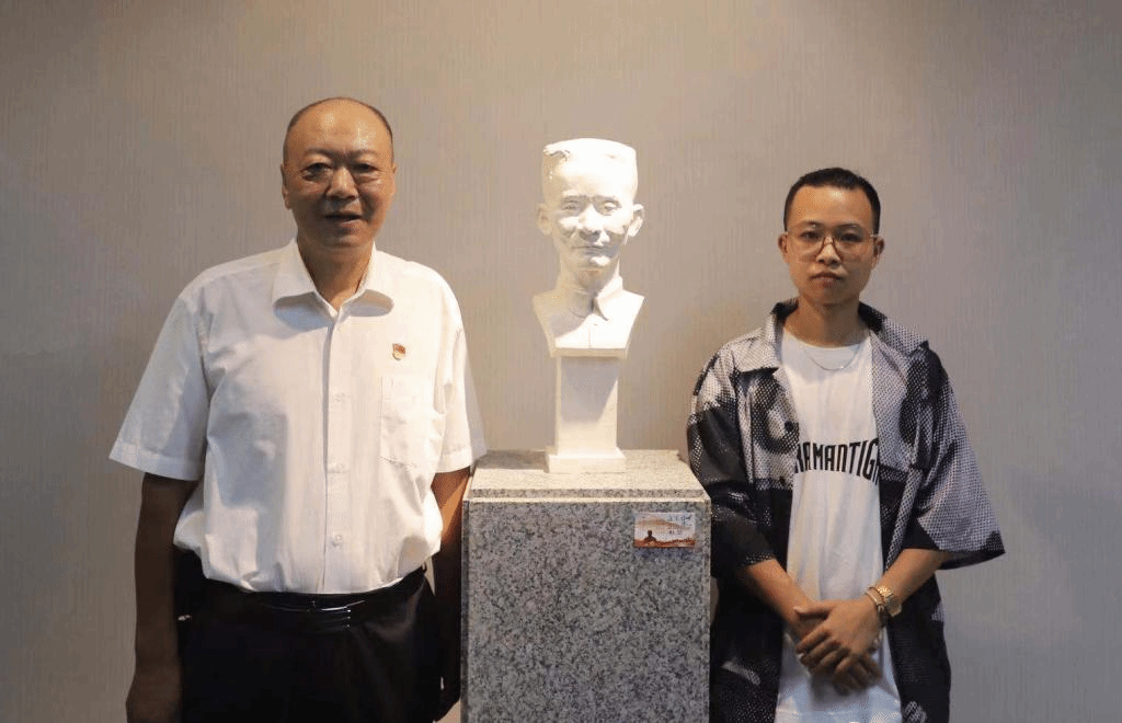 谷豫东先生一边参观画展一边讲述父亲谷文昌的故事,分享父亲践行“不带私心搞革命,一心一意为人民”的点点滴滴。观展时,谷豫东与谷文昌头像雕塑的创作者连吴楚老师亲切交谈并在雕塑前合影留念。连吴楚分享了自己的创作过程,表示自己在创作中深受“谷公”的精神熏陶,一笔一划描绘谷文昌生平事迹、一刀一刻叙说谷文昌精神精神内涵。