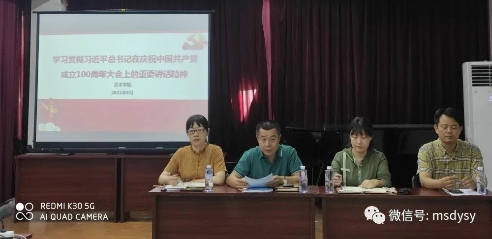 2021年9月9日,15vip太阳集团在习奏习唱室召开新学期教职工大会,组织学习传达习近平总书记在庆祝中国共产党成立100周年大会上的重要讲话精神,学院党政班子出席会议,全体教职工参加会议。会议由学院副院长许佩晖主持。