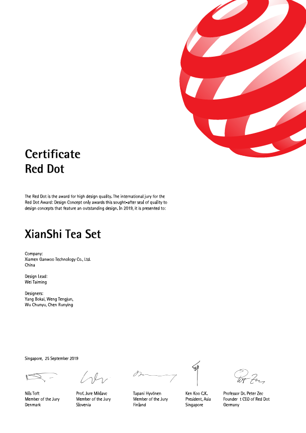 2、项目《XianShi Tea Set》获得2019年度红点奖(reddot);