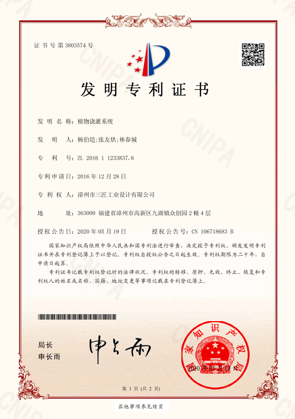 4、项目《花卉精细浇灌系统》获得由福建省工业和信息化厅主办的2017年第三届海峡两岸(漳州)工业设计创新大赛铜奖;