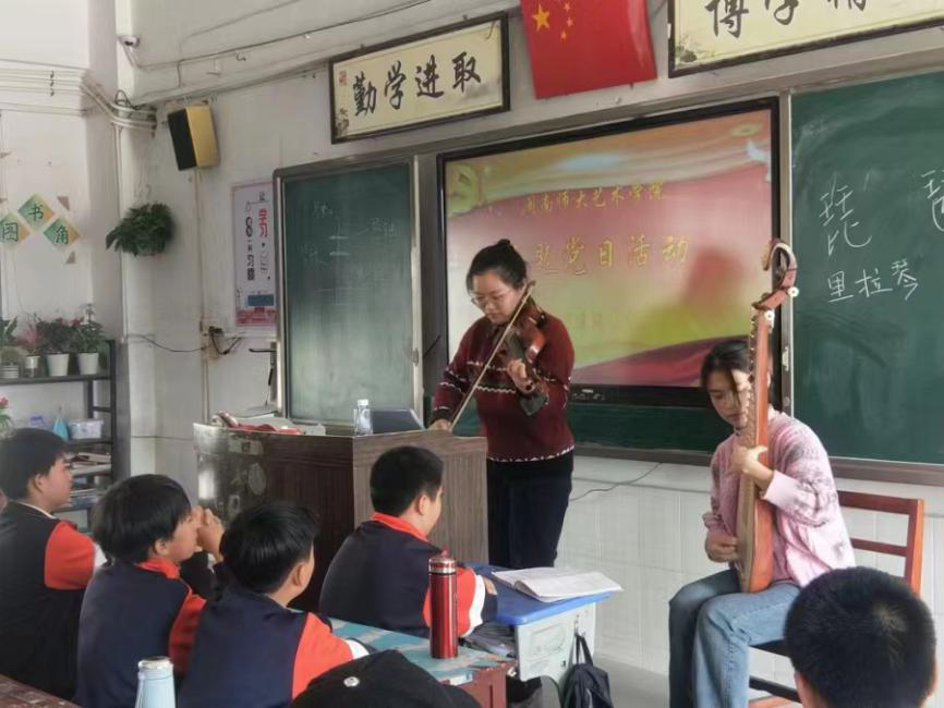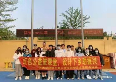 乡村振兴离不开文化振兴,学生党员利用专业优势精心谋划,精细安排,精准实施,将艺术志愿行活动与学科专业特色深度融合,利用红色主题的美术设计、剪纸、手工创作,动画创作,传统乐器演奏、红色歌曲表演等形式,依托红色公益课堂载体,用艺术介入的方式传播红色文化,以美育人,助力乡村文化振兴。帮助地方少年儿童“艺”心筑梦、“艺”起成长,满足地方中小学生的精神文化需求,提升中小学生的艺术情操、启发了中小学生的爱国爱党情怀,同时帮助少年儿童了解传统文化艺术,提升青少年儿童艺术审美情趣和艺术创造力,有效引导少年儿童学习党史,更好地培养少年儿童童心向党的情怀。
