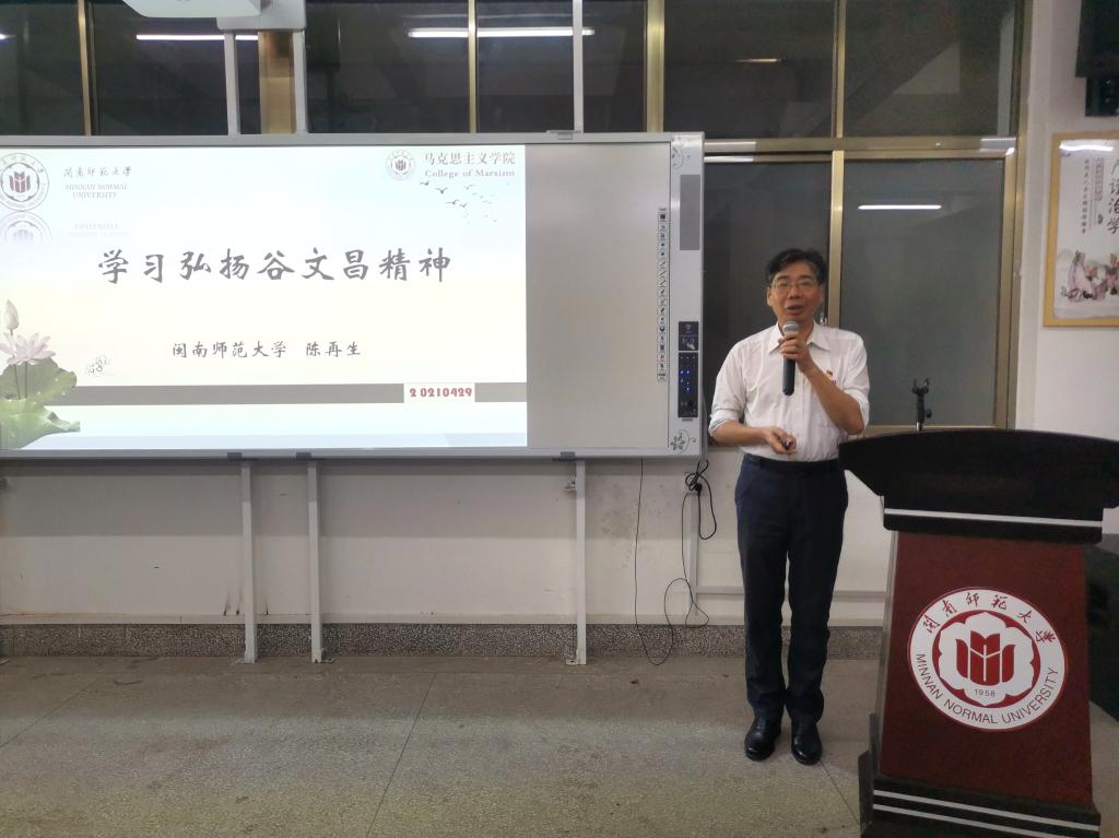 马克思主义学院陈再生院长作《学习弘扬谷文昌精神》辅导报告活动照片