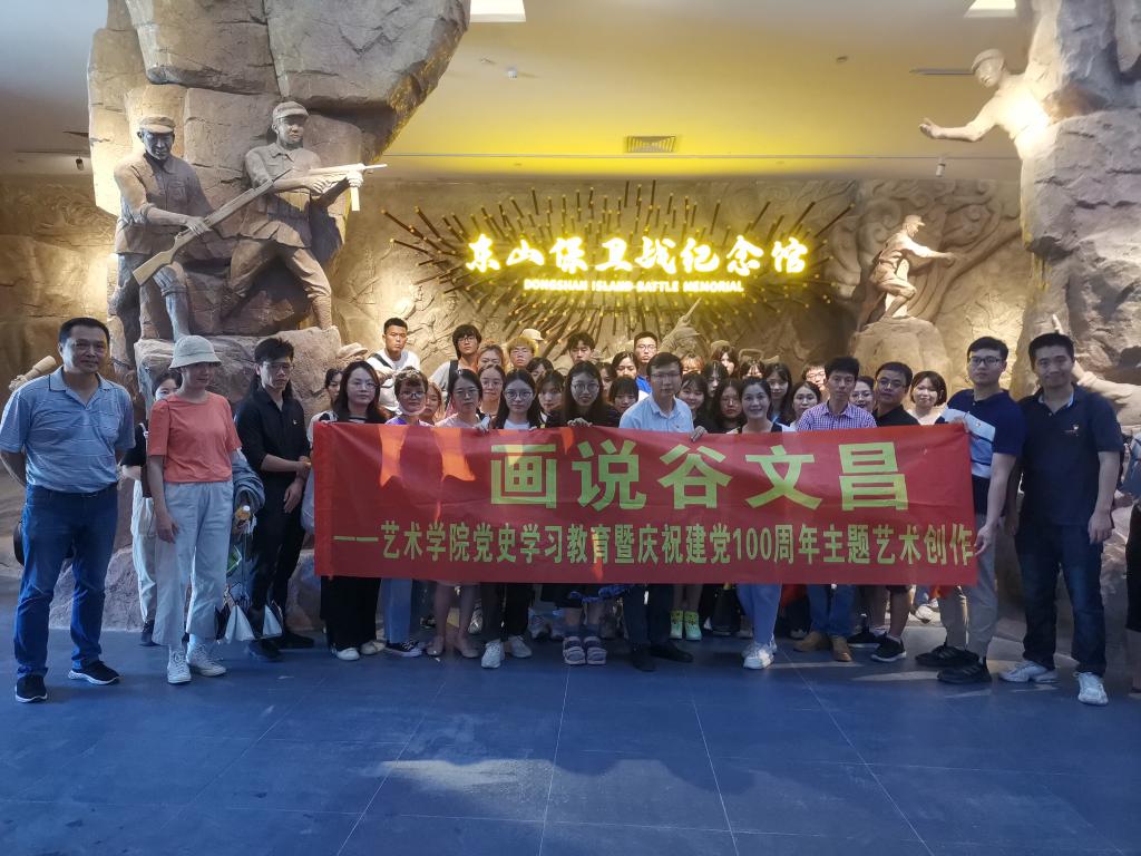 (1)搭建“党建+”第一课堂教学,丰富思政育人内容。支部党员教师在课堂上通过深入挖掘美术、设计等艺术专业的思政元素,将红色文化融入课程思政建设。先后开展“笔绘初心”“‘画’说谷文昌”等一系列主题活动,组织异地教学,到东山谷文昌纪念馆、漳浦县车本村、毛主席率领红军攻克漳州纪念馆、中共福建临时省委旧址等红色教育基地开展党史学习教育现场教学活动,在“润物细无声”中践行课程思政,潜移默化影响、教育学生。