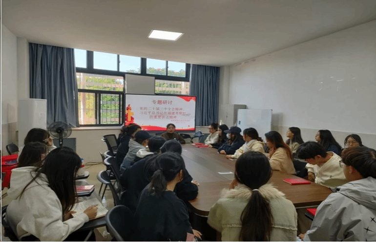 最后,吴杨梅老师进行总结发言,对全体学员提出期望:第一,继续深入学习贯彻党的二十届三中全会精神和习近平总书记来福建考察重要讲话精神,理论联系实际,以更广阔视野来思考问题。第二,牢记习近平总书记嘱托,坚定不移听党话、跟党走,筑牢精神之基;勇于担当,以实现中华民族伟大复兴为己任,将个人成长与国家发展紧密结合,争做有理想、敢担当、能吃苦、肯奋斗的新时代好青年。第三,自觉以一名党员标准严格要求自己,不断提升党性修养,踏实求学,努力掌握专业技能,全面提高自身综合素养。