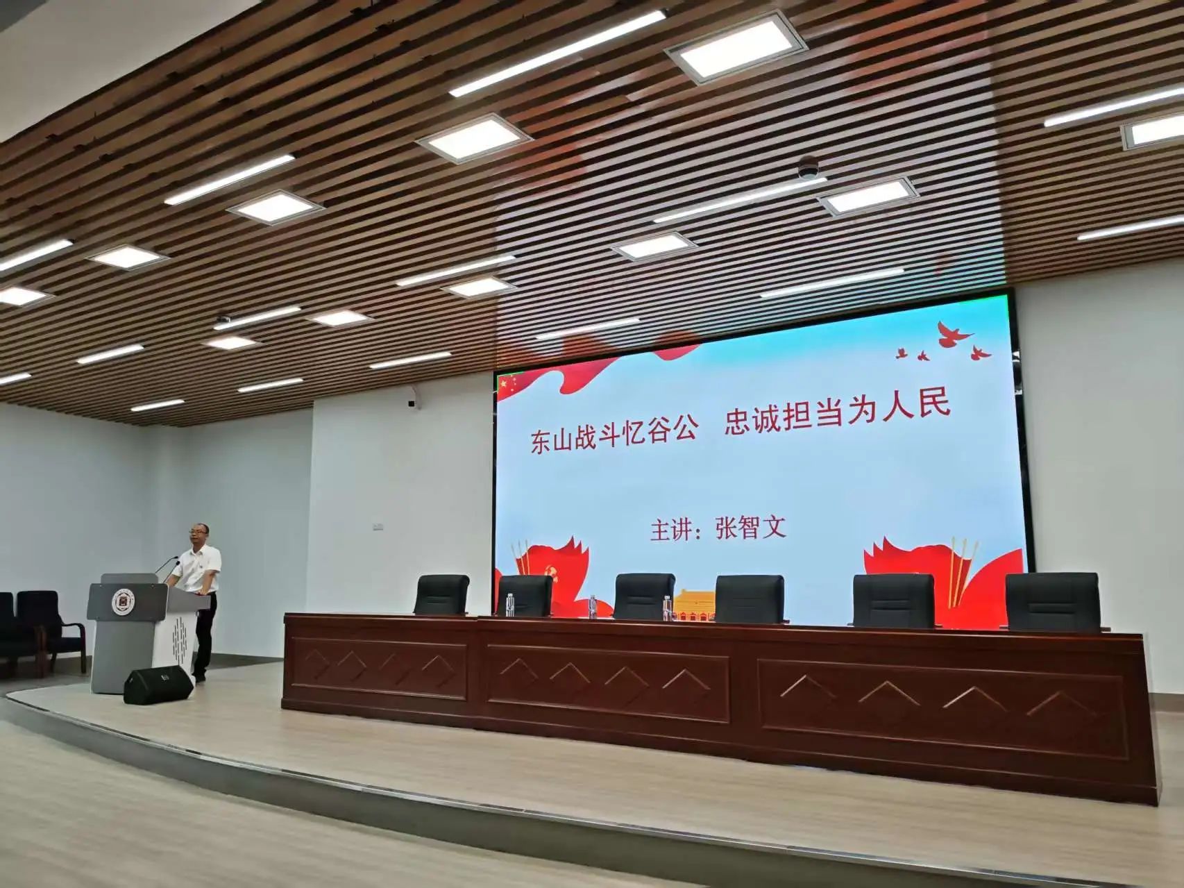 漳州市委党校张智文副教授以《东山战斗忆谷公 忠诚担当为人民》为主题,回溯东山保卫战历史,深情讲述谷文昌同志在东山战斗中部署战备工作、英勇指挥和妥善部署战后工作等方面感人故事。通过鲜活的案例、生动的讲述,深刻诠释了“谷文昌先进事迹”的时代内涵,激励党员们传承红色基因,永葆为民初心。